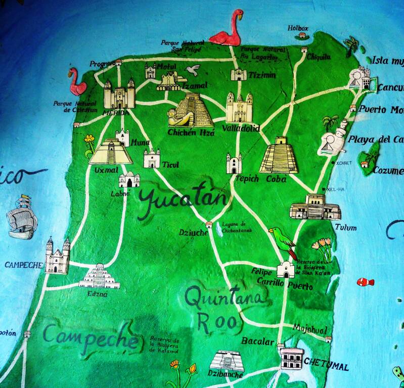 Nära Guatemala, Belize och Kuba. > Karta Yucatan. - som går att förstora