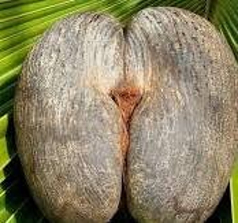 Bild: Coco de mer. Världens största och dyraste kokosnöt. Fridlyst.