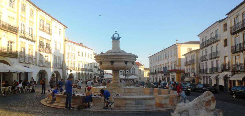 I höjd med Lissabon svänger vi rakt in i landet och är snart framme i Évora. Ca 45 mil med kringelikrokar.