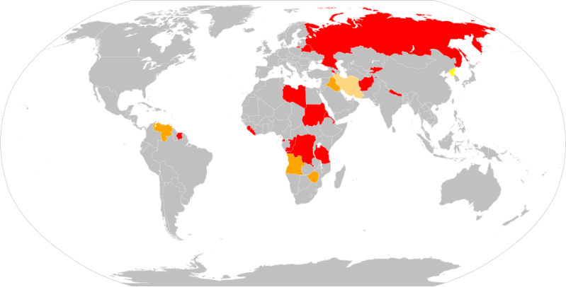 Totalt 142 flygbolag som ej lever upp till säkerhetskrav enligt FN-organet ICAO:s riktlinjer, eller är hemmahörande i länder, totalt 16 stycken, vars myndigheter inte anses ha tillräcklig kontroll över sin flygsektor.